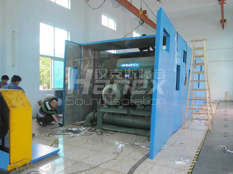 案例簡介:廠內(nèi)有5臺羅茨鼓風(fēng)機(jī),單臺風(fēng)機(jī)功率為132Kw,5000m3/hr,運行時噪聲值在105dB(A)以上。治理后,在隔聲罩1米處噪聲值小于85dB(A),達(dá)到規(guī)定值。