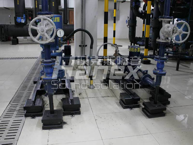 5、 從國內(nèi)已有的案例與我們漢克斯隔音的實(shí)踐來看,地下室設(shè)備房內(nèi)減振降噪,通常是通過支架全部落地,同時(shí)對(duì)支架與設(shè)備基礎(chǔ)進(jìn)行減振來處理(如紹興人民醫(yī)院住院部的案例);