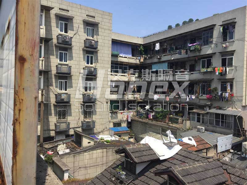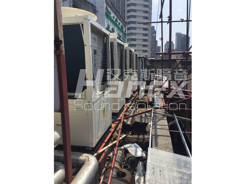 漢庭酒店(杭州西湖仁和路店)北側(cè)客房樓屋面安裝五組VRV空調(diào)主機,空調(diào)機主同時運行時噪聲值可達到75~80分貝。在設備的北面是居民住宅樓,設備運行對該區(qū)域居民聲環(huán)境產(chǎn)生一定的影響,同時對相鄰的客房樓產(chǎn)生噪聲污染。