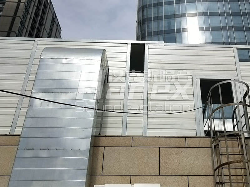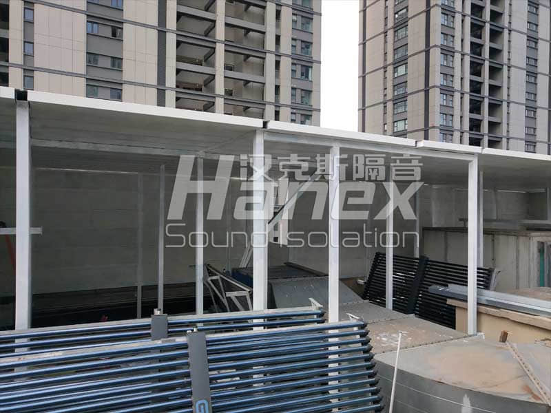 3、考慮現(xiàn)場(chǎng)屋頂有太陽(yáng)能以及空調(diào)機(jī)組設(shè)備的正常使用,我公司在半隔聲房頂部該區(qū)域部分采用透明隔聲板或隔聲窗設(shè)計(jì),保證半隔聲房?jī)?nèi)部設(shè)備的正常使用。