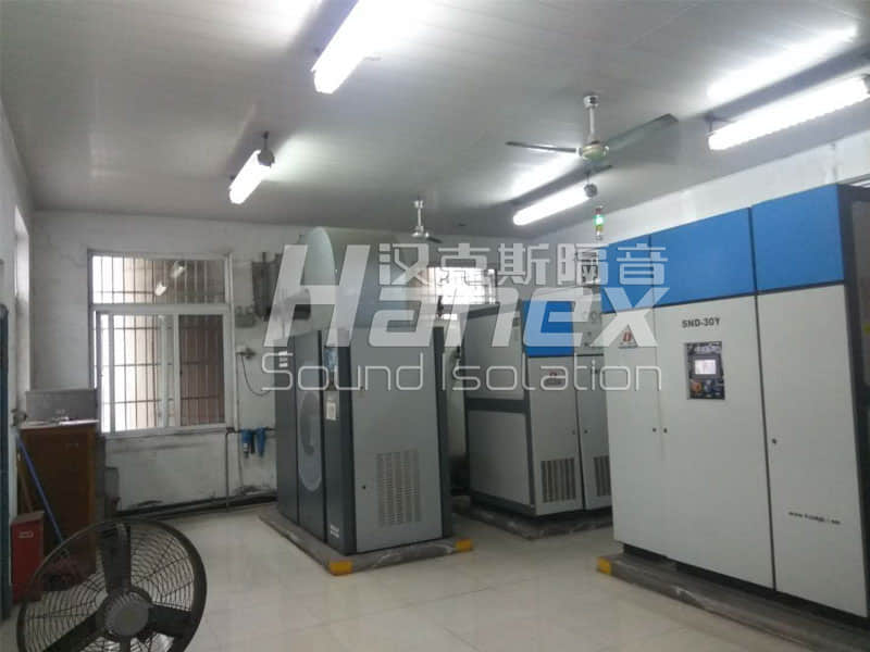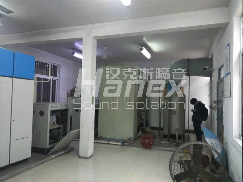 制氧機房內(nèi)制氧設(shè)備運行時,經(jīng)漢克斯隔音技術(shù)人員實測房內(nèi)噪聲數(shù)據(jù)值為90dB(A);制氧機房雙開門外噪聲數(shù)據(jù)值為66dB(A);制氧機房西側(cè)排風(fēng)口噪聲數(shù)據(jù)值為80dB(A)。