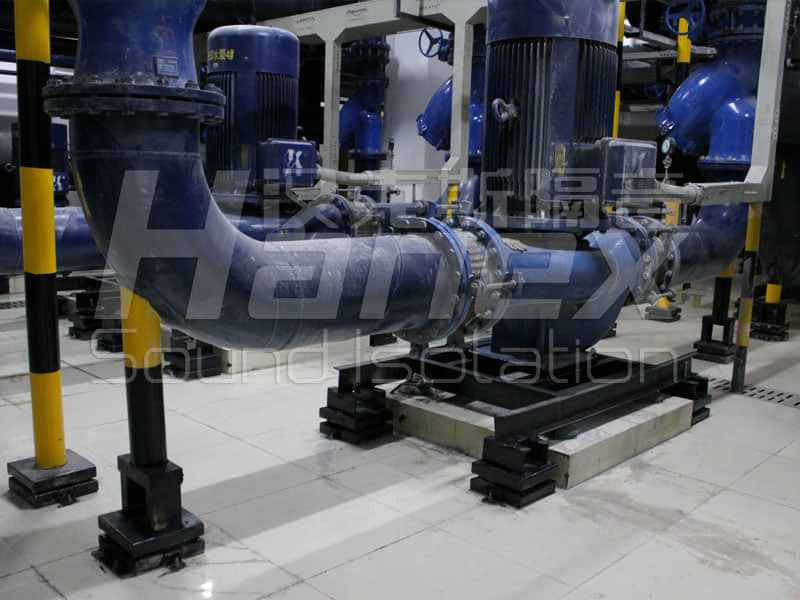 紹興人民醫(yī)院地下水泵房內(nèi)的冷凝機組噪聲過大,影響周邊醫(yī)院區(qū),尋求冷凝機組降噪處理,杭州漢克斯隔音技術(shù)工程有限公司針對該項目進行了冷凝機組減震、水泵減震、管道彈性支撐減震等方式解決振動噪聲問題。